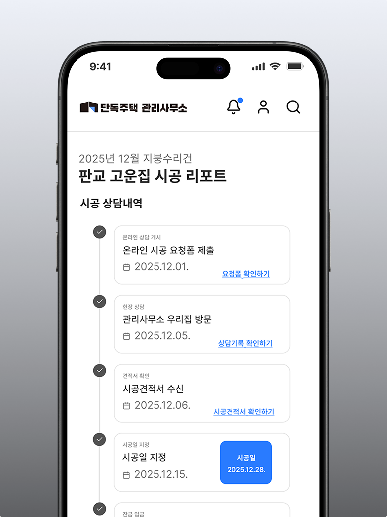 여러 업체 부를 필요 없이건축 전문가가 집 전체를 통합 설계·시공
